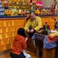 依照预约号码依序至座前或坐或跪提问,会根据情况指点,及加持。