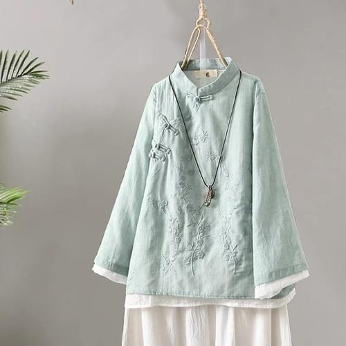 禅意棉麻刺绣盘扣上衣女装秋季款