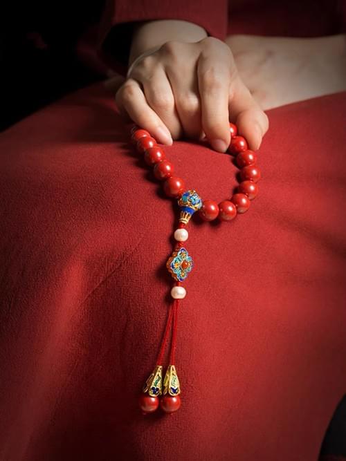 朱砂紫金砂手持36颗念珠十八子佛珠手串