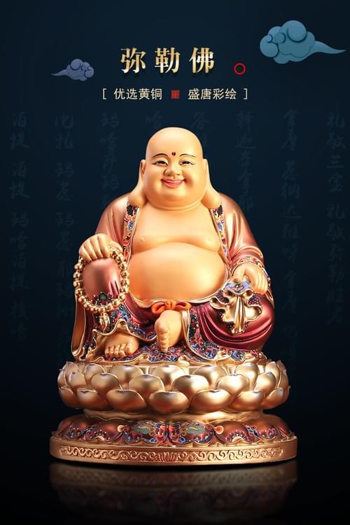 纯铜彩绘弥勒佛像,大肚佛笑佛,供奉家中,店铺,招财纳福,保平安。