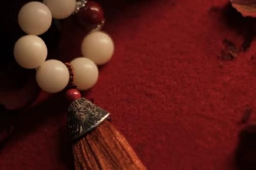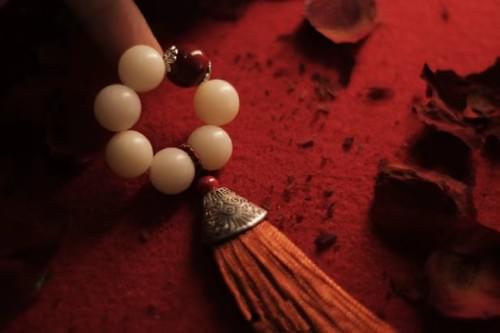 手捻绕指白菩提子红朱砂