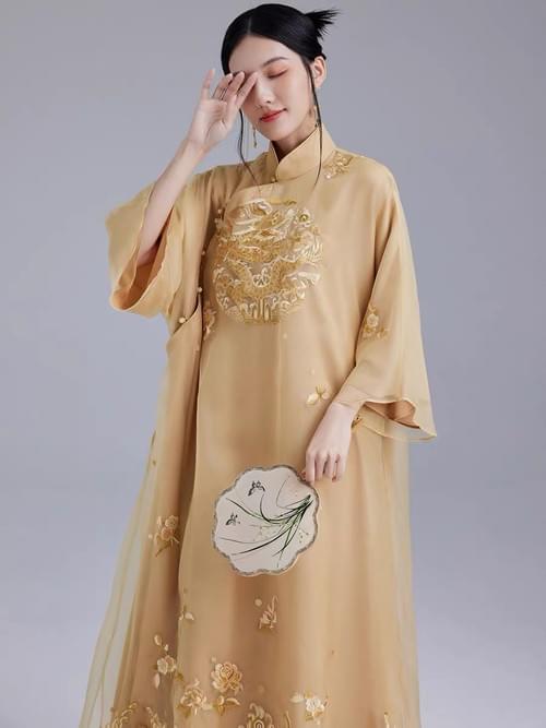真丝刺绣连衣裙