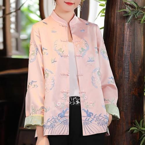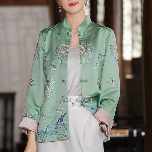 盘扣刺绣短款外套秋冬款