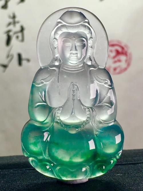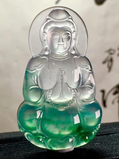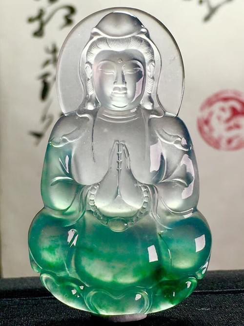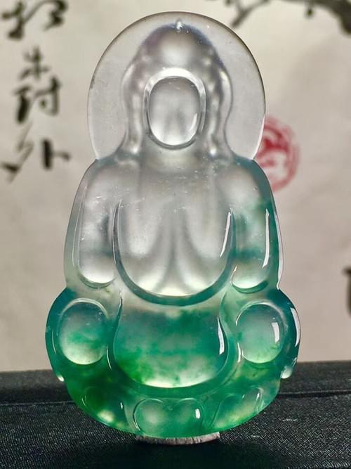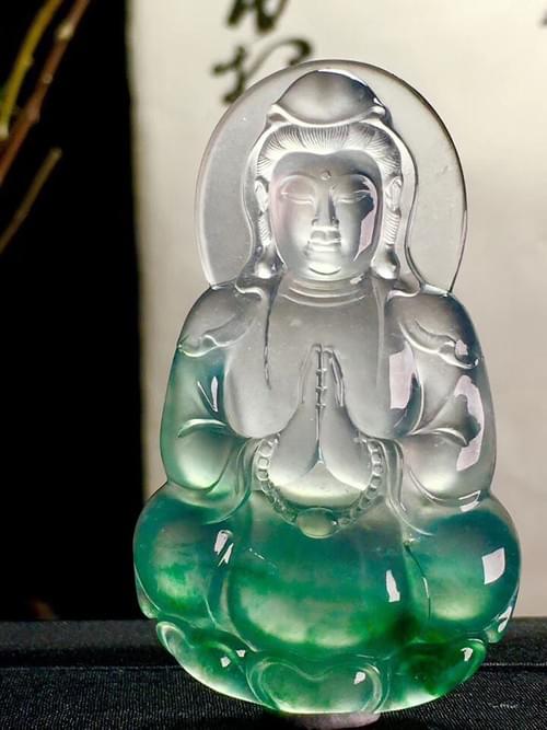 天然缅甸冰种翡翠素件玉佛观音玉佩件挂件吊坠