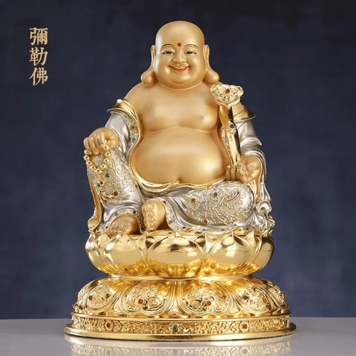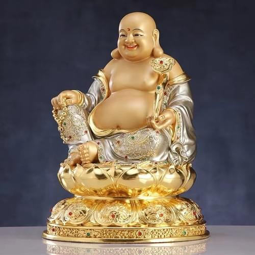 纯铜银彩镶宝弥勒佛像,大肚佛笑佛,供奉家中,店铺,招财纳福,保平安。