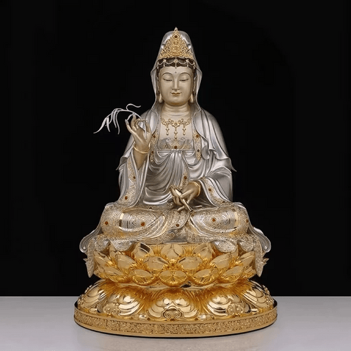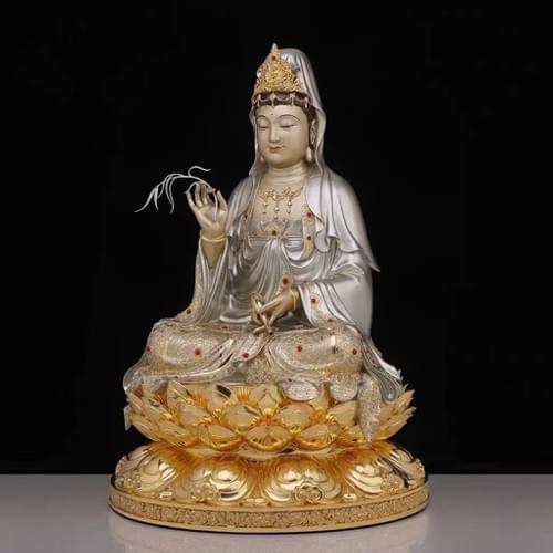 纯铜掐丝银彩镶宝观世音菩萨佛像,供奉家中保平安