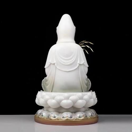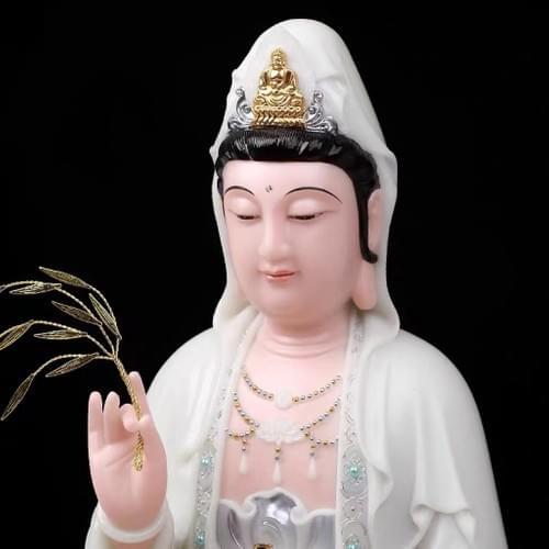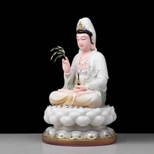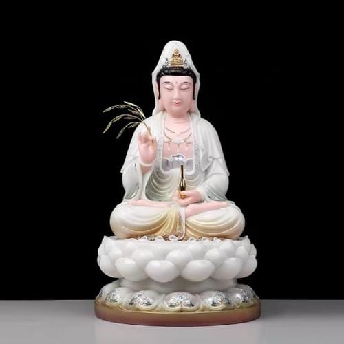 汉白玉珠光彩观世音菩萨佛像,供奉家中保平安