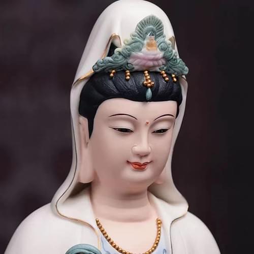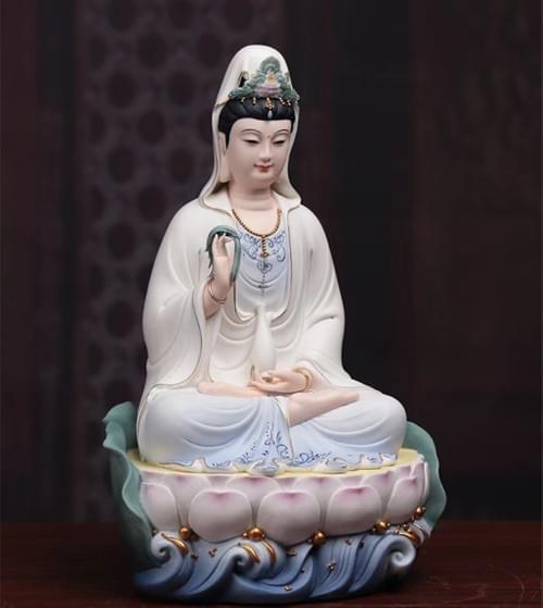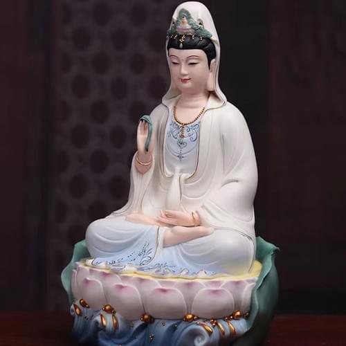 陶瓷彩绘观音菩萨像,供奉家中保平安。