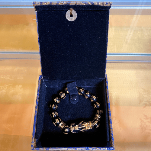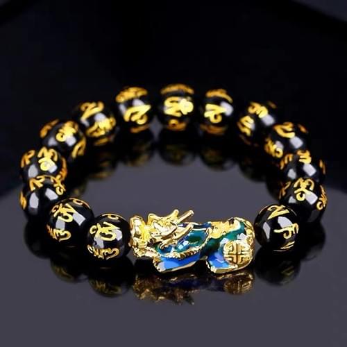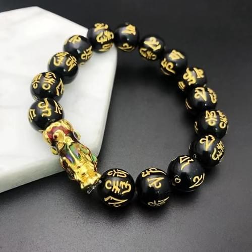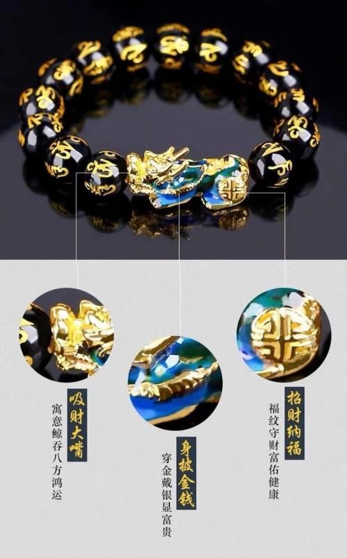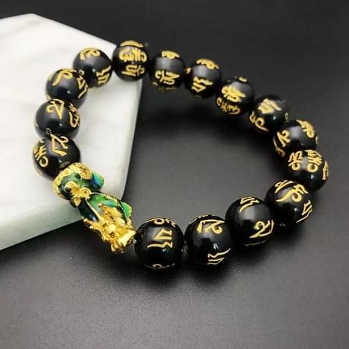 慈师开光加持,天然黑曜石感温变色貔貅沙金手链招财转运保平安佛珠手串,1cm