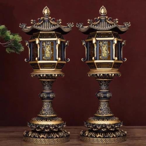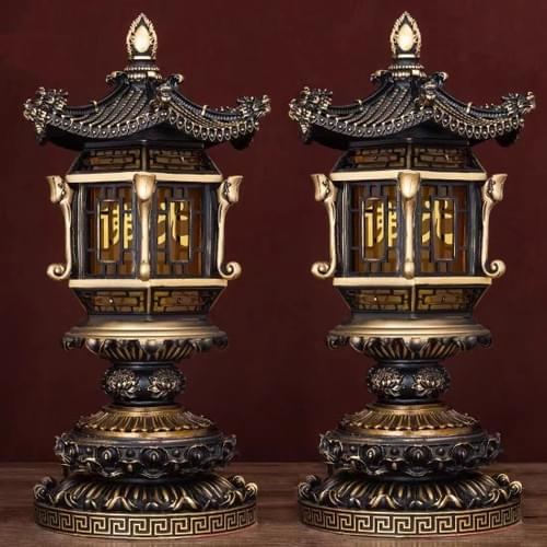 材质:古铜,LED灯板,三色:红、金、橙,祥云莲花样式雕刻,莲花底座插电款。